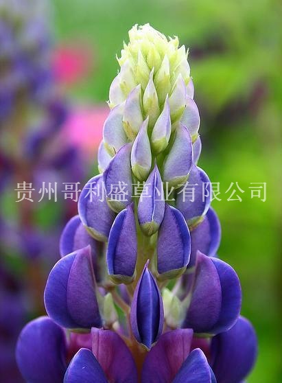 多年生草本,株高90120cm。叶多基生,掌状复叶,小叶916枚。轮生总状花序,在枝顶排列很紧密,长可达60cm,花蝶表,蓝紫色。园艺栽培的还有白、红、青等色,以及杂交大花种,色彩变化很多,花期56月..