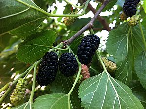 黑色水果是近几年新兴的一类水果,其营养价值远高于同类品种。黑色水果因富含维生素、硒、铁、钙、锌等物质,而具有抗氧化、抗衰老等功效,目前已成为国内水果市场上的新宠儿。黑色水果之所以呈现出黑色外表,是因为它含有丰富的色素类物质,例如:原花青素、叶绿素等,这类物质具有很强的抗氧化性。相比浅色水果,黑色水果还含有更加丰富的维生素C,可以增加人体的抵抗力。此外,黑色水果中钾、镁、钙等矿物质的含量也高于普通水果,这些离子大多以有机酸盐的形式存在于水果当中,对维持人体的离子平衡有至关重要的作用。多吃黑色水果抗衰老。水果都有一个规律:即颜色越深,营养价值越高。即使是同一品种或同一水果的不同部位,由于颜色不同,维生素、色素及其他营养物质含量也不同。黑桑葚苗栽培形式灵活多样,露天、大棚、盆栽均可,在风景区、旅游点、农家乐、城市郊区等处建立自由采摘园。
